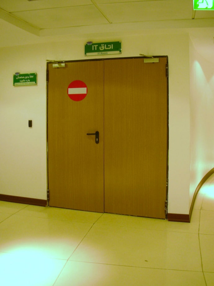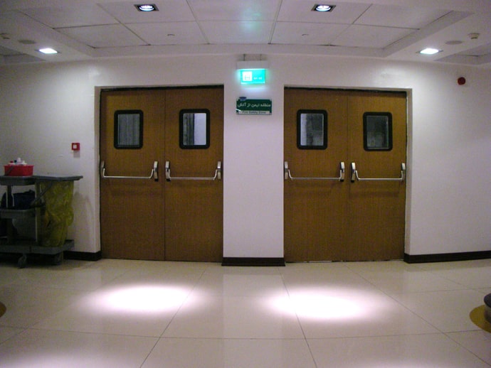 Costruzione come le porte di mano, vedere corrispondente descrizione alla sezione “PORTE DI MANO / Descrizioni / REI 60 / REI 120 / Multiuso” a seconda tipo scelto, ma con le ante in lamiera d’acciaio rivestite in PVC imitazione legno, tinta unita, alluminio o acciaio inossidabile e nylon di protezione asportabile dopo la posa delle porte.