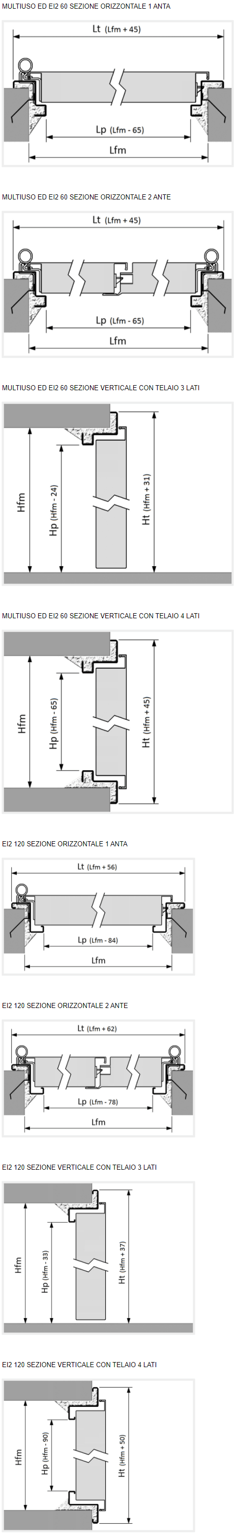 2 diversi tipi di telaio: 1 per il tipo multiuso + EI2 60 e 1 per il tipo EI2 120.